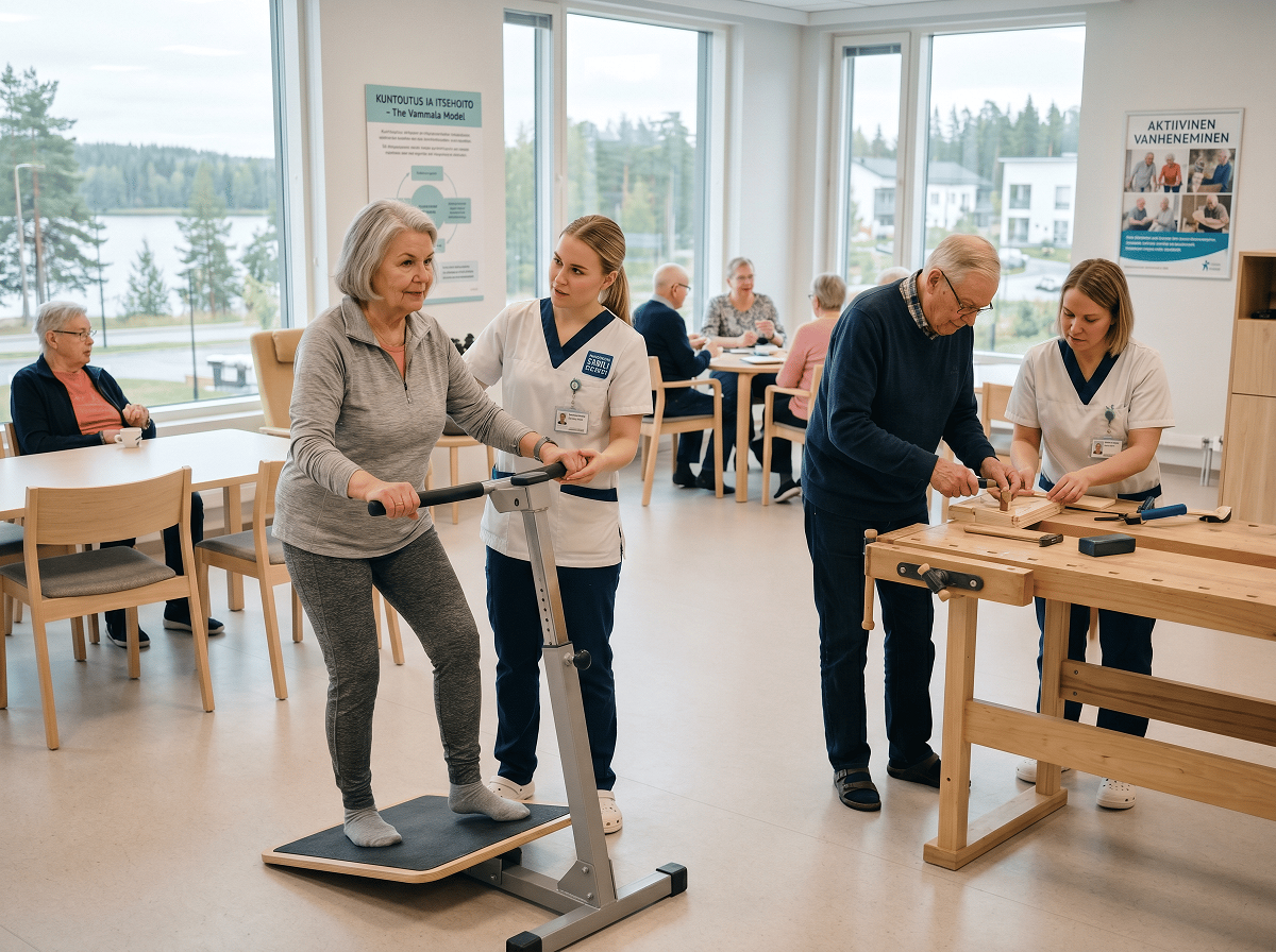 根據朱博士的解析,芬蘭成功實現「壓縮失能」的成果,來自於觀念與照護體系的全面翻轉。芬蘭將醫院定位為「恢復功能的地方」,並將護理人員的角色從「伺候者」轉變為「協助自立者」。透過撤除病床護欄、鼓勵即使極度衰弱的病人也每天練習站立或行走,這種「去障礙化」與「身/心賦能」的訓練,搭配北歐從小培養的規律活動習慣,大幅縮減了長者臨終前臥床的時間。
